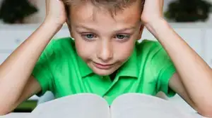 Image of a boy looking confused while reading a book. Learning disabilities may include dyslexia, math disorder, writing disorder, auditory processing deficits, or visual processing deficits. Although each child with a learning disability is unique, many also have associated visual problems. Addressing
